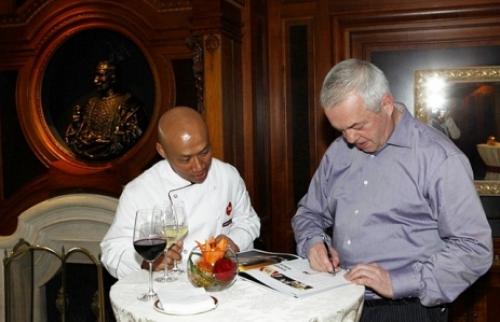 Đầu bếp tầm cỡ quốc tế Trần Văn Hai - trái. Ảnh: Quang Chí.