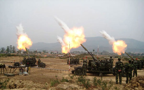 Trận địa pháo 37mm đồng loạt nổ súng đánh mục tiêu.