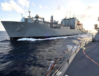 Trong ảnh là tàu USNS Amelia Earhart đang tiếp nhiên liệu cho tàu khu trục USS McCampbell (DDG-85) và khinh hạm HMAS Newcastle (FFFG-06) của Hải quân Hoàng gia Anh