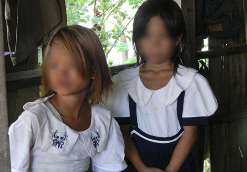H. (trái) và bạn học - "tác giả" những cuộc điện thoại quấy rối Cảnh sát 113 An Giang.