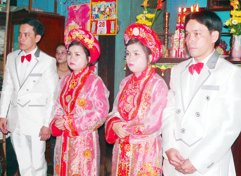 Hai cô gái sinh đôi lên xe hoa với hai anh em sinh đôi. Đám cưới của họ tổ chức cùng ngày làm xôn xao quê lúa.