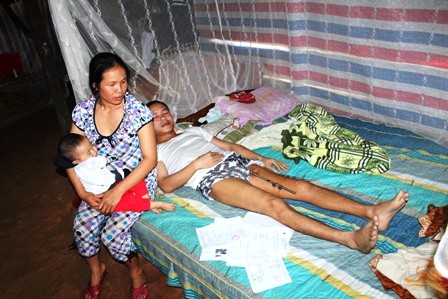 Đó là những câu nói cay đắng, xót xa của chị Dương Thị Lê, ở xóm Kim Cương I, xă Sơn Kim I (Hương Sơn, Hà Tĩnh) khi phải cắn răng chịu đựng nh́n người chồng đang tuyệt vọng, quằn quại trong từng cơn đau đớn đến tột cùng trên giường bệnh. Mà bản thân không thể làm ǵ giúp chồng. Đến số thuốc điều trị hàng ngày cho anh chị cũng không lo đủ.