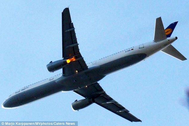 Chiếc máy bay Lufthansa Airbus A321-200 vừa cất cánh khỏi sân bay Helsinki của Phần Lan được 15 phút thì động cơ trái nổ và bốc cháy khiến 162 hành khách và 6 phi hành đoàn thót tim.