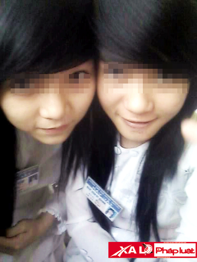 | T. (bên phải) cùng bạn học ngày chưa bị đánh ghen vô cớ. |