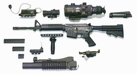 Súng có ray để gắn súng phóng lựu 40mm M203 tiêu chuẩn NATO.