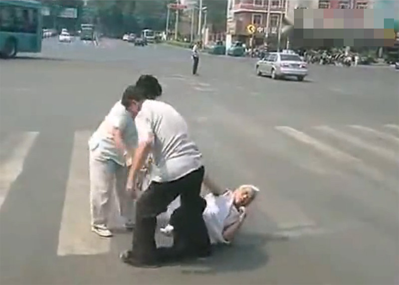 Điều ngạc nhiên là những người qua đường khi đó chỉ giương mắt nhìn bà cụ bị đánh và kéo lê trên phố mà không ai dám can ngăn hay báo cảnh sát.