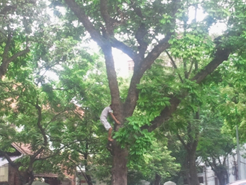 Ngồi trên cây sấu không thiết bị bảo hộ rất nguy hiểm. Việc bẻ cành, ngắt lá vứt xuống đường làm mất mỹ quan, ảnh hưởng đến môi trường và có thể gây nguy hiểm cho người đi đường.