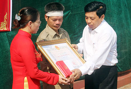 | | Lãnh đạo tỉnh Nghệ An trao "Huân chương Dũng cảm" của Chủ tịch nước truy tặng em Nam cho ba em Nam. |