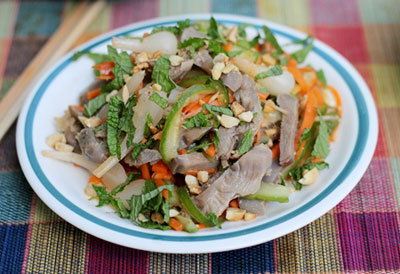 - Cà rốt cạo vỏ, rửa sạch, thái sợi, trộn vào bát dưa leo một ít muối, đường, giấm, để khoảng 10 phút sau đó dùng tay sạch vắt ráo.