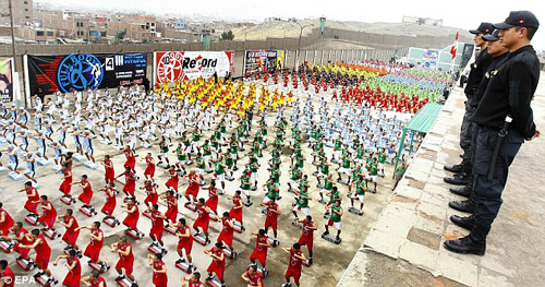 Hơn 1.200 tù nhân tại nhà tù Lurigancho (Peru) đã mặc những bộ đồ thể thao nhiều màu sắc, cùng nhau nhảy đồng diễn để lập kỷ lục thế giới.