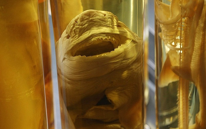 Khuôn mặt dị dạng của cá mập con bị “nhốt“ trong bình cồn ở Bảo tàng lịch sử tự nhiên Berlin