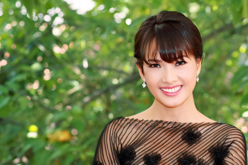 Anh Thư với nụ cười khả ái trong buổi họp báo sáng nay.