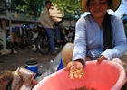 Một số người phải lấy hàng từ đầu mối, nhưng cũng có người trực tiếp đi bắt ngoài đồng, bỏ vào rọ rồi mang đến đây bán.