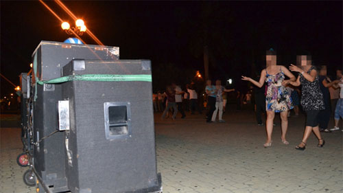 Một câu lạc bộ khiêu vũ dùng dàn loa công suất lớn để mở nhạc tập luyện trong công viên Gia Định, Q.G̣ Vấp.