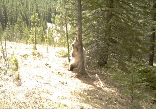 Ngay cả chú gấu đen cũng không thoát nổi sức lôi cuốn của gốc cây này. Có lẽ đây là cách gãi ngứa, chải lông đặc biệt của loài vật to lớn này.