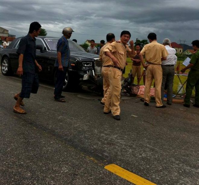 Chiều 20/8, người người nhà nhà đang sắm sửa đi chùa dịp lễ Vu Lan, tụ họp ăn rằm tháng Bảy. Tại Km35 quốc lộ 46, thuộc địa phận xã Vân Diên (huyện Nam Đàn, Nghệ An) bất ngờ xảy ra một vụ tai nạn nghiêm trọng giữa siêu xe Rolls-Royce Phantom in hình rồng trị giá 40 tỷ với xe máy do hai thanh niên điều khiển.