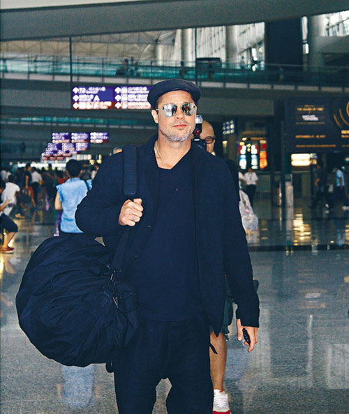Brad Pitt xuất hiện tại sân bay ở Hong Kong hôm thứ 6, 20/9. Tài tử đi một mình và lặng lẽ xuống máy bay nhưng nhiều người vẫn nhận ra anh.Anh mỉm cười thân thiện khi trông thấy một fan chụp ảnh.