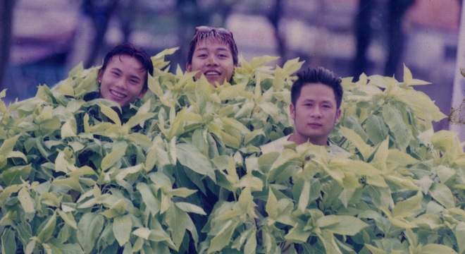 Nhóm nhạc Quả dưa hấu những ngày đầu. Tuấn Hưng, Bằng Kiều vắt vẻ trên ngọn cây.
