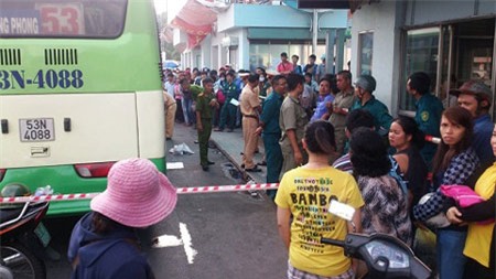 Một cô gái đã dìu bà đến vạch sơn dành cho người đi bộ. Do chân yếu bà đã bị ngã quị trên mặt đường cũng vừa lúc xe buýt tuyến Đại học quốc gia – Lê Hồng Phong trờ tới cán ngang người.