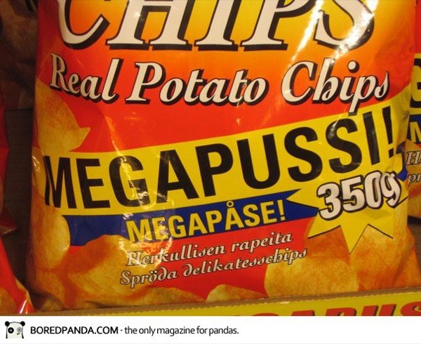 Tronng tiếng Anh, Pussy vừa có nghĩa là mèo, vừa có nghĩa chỉ bộ phận sinh dục của phụ nữ, vậy nên loại snack Megapussi này quả thực rất nhạy cảm.