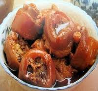 - Cho vào 1 cái nồi lớn 3 cups nước lọc + giò heo + 2 củ hành ( thái dọc ) + toỉ + apple soda + xì dâù + rượu. nấu sôi rôì vặn lưả xuống medium. Thời gian nâú tuỳ theo sở thích cuả môĩ người ( Muốn giò heo mềm & dòn thì khoảng 30 phút , mềm hơn nưã thì khoảng 1 tiếng ). Khi giò heo chín rôì trước khi dùng múc bỏ bớt mỡ đi và rắt tí xiú dầu mè & rau muì bầm nghuyễn lên.