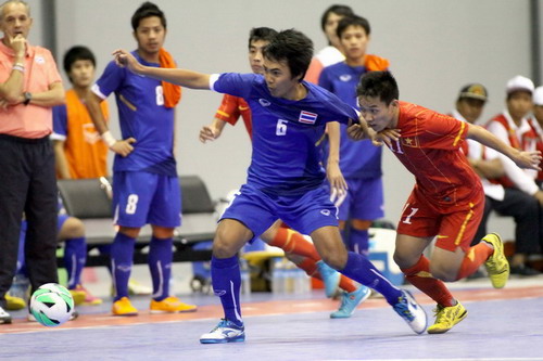 Futsal nam Việt Nam (áo đỏ) đã thua đậm trước Thái Lan - Ảnh: Khả Hòa |