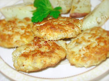 - Viên chả thành những miếng vừa ăn rùi chiên trong chảo dầu nóng đến khi vàng đều hai mặt nghen.