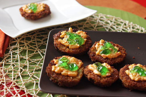 Khi tất cả cà chua xanh chiên xù chín, phết lên cà chua một ít xốt ớt, rồi đến thạch bạc hà và thưởng thức nhé!