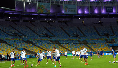 Đội tuyển Argentina tập dượt trên sân Maracana, Rio de Janeiro, hôm Thứ Bảy, trước ngày ra quân gặp Bosnia & Herzegovina. (Hình: Ronald Martinez/Getty Images)
