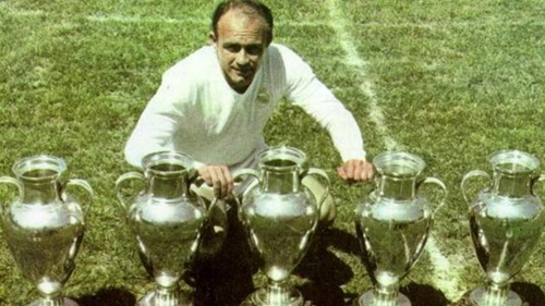 Alfredo Di Stefano sinh ngày 4/7/1926. Sự nghiệp và danh tiếng của ông gắn liền với CLB Real Madrid. Ông là cầu thủ ghi bàn xuất chúng thứ hai của Real với 216 bàn trong 282 trận đấu ở La Liga trong giai đoạn 1953-1964. Cùng với đội bóng Hoàng gia Tây Ban Nha, Stefano giành rất nhiều danh hiệu trong đó có 8 chức vô địch Tây Ban Nha và 5 lần liên tiếp đoạt Cup châu Âu từ 1955-1960.