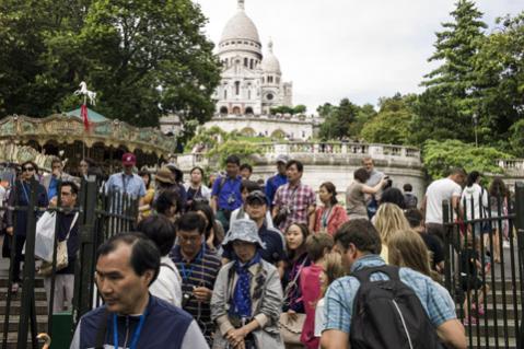 Du khách Trung Quốc tới thăm đồi Montmartre ở Paris trong tháng Tám này. Ảnh: Getty Image |