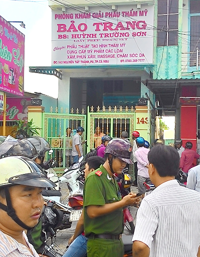 Người dân xung quanh khu vực xôn xao trước vụ "cướp" xảy ra tại viện thẩm mỹ Bảo Trang, sáng 20/10. Ảnh: Xuân Trang