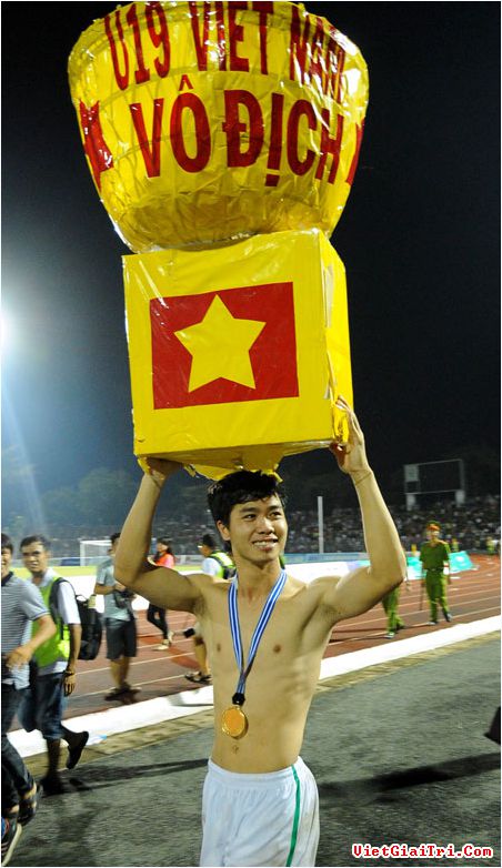 Công Phượng và các đồng đội thuộc học viện HAGL lần đầu tiên mừng chức vô địch. Trong khoảnh khắc hạnh phúc sau khi thắng U21 Thái Lan 3-0 trước 50.000 khán giả Cần Thơ, CP10 lần đầu tiên khoe cơ bắp khi cởi áo tặng fan. Từ cậu bé gày gò, ốm o và bị loại khỏi lò Nghệ An, anh giờ là chàng trai khôi ngô với thể hình khá dày cơm.