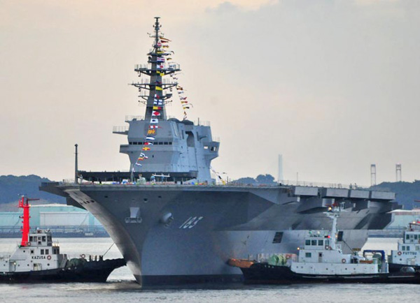 Nhật Bản đă triển khai đối phó với mối đe dọa này từ năm 2013 với tàu sân bay trực thăng lớp Izumo, mà Nhật gọi là tàu khu trục kiêm chở trực thăng. Tàu này nhỏ hơn tàu Liêu Ninh gấp 2 lần về lượng giăn nước (dài 250 m, lượng giăn nước khoảng 20.000 tấn, chở được 14 trực thăng), nhưng hai chiếc Izumo theo kế hoạch sẽ được cải biến để có thể bố trí các máy bay tiêm kích hiện đại F-35B.