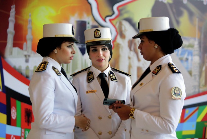 | Những nữ cảnh sát Ai Cập trong ngày lễ tốt nghiệp tại Học viện cảnh sát ở thủ đô Cairo. Nhóm cảnh sát nữ thành lập từ năm 1984. Tuy nhiên, số lượng nữ cảnh sát chỉ tăng đáng kể từ sau khi Tổng thống Hosni Mubarak từ chức năm 2011. Theo tờ Al Arabiya, một số phụ nữ đă được phong hàm Chuẩn tướng v́ năng lực vượt trội. |
