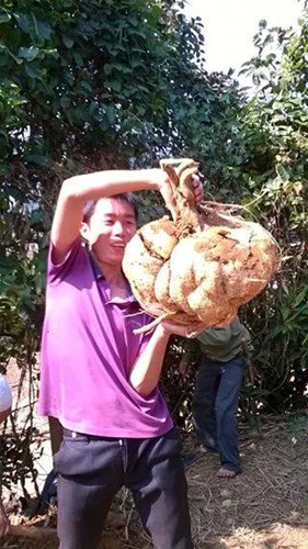 Mới đây, cư dân mạng Việt xôn xao về bức ảnh chụp một củ đậu khổng lồ, do Fanpage Facebook Hòa Bình 24h chia sẻ. Theo đó, củ đậu được cho là nặng tới 15kg, được tìm thấy ở xóm Bận, Tuân Lộ, Tân Lạc, Hòa Bình. Ảnh: Hòa Bình 24h.