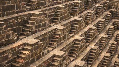 Chand Baoren Rajasthan ngoạn mục 3500 bậc giếng vuông , sâu 13 tầng, với 30m xuống đáy giếng, hồ nước xanh ngọc lục. Được xây dựng bởi Vua Chanda Nikumbha Dynasty giữa 800 và 900 AD.
