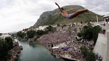 Nhưng trong những năm 1990, cây cầu đã bị phá hủy bởi Bosnian Serb và Croatia Trong cuộc chiến tranh Bosnia. Sau chiến tranh, thành phố và cầu bắt đầu xây dựng lại. "Phải mất 10 năm vào tháng Bảy năm 2004, 'cây cầu cũ' sửa xong và mở lại,".