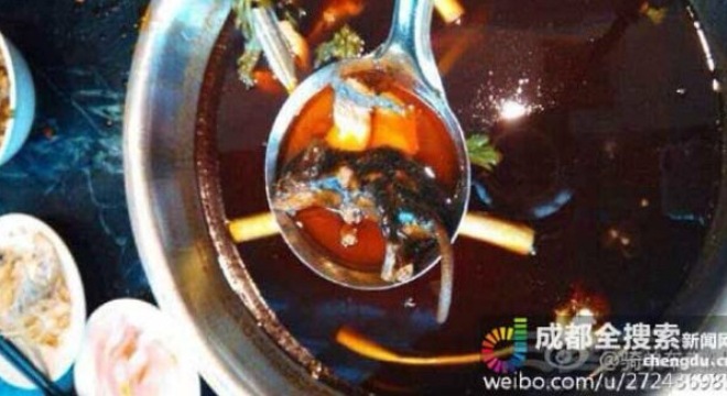 Một con chuột được vớt lên từ bát súp của một nhà hàng Trung Quốc khiến khách hàng hoảng hồn. Ngay lập tức quản lý nhà hàng đã muốn "bịt miệng" khách bằng cách xin bồi thường 20.000 tệ. Nhưng bát súp chuột đã được chụp ảnh và sau đó được tung lên mạng khiến ai nhìn cũng phải dựng tóc gáy.