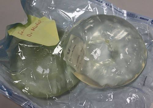Hai túi ngực nhăn nhúm và một đã bị vỡ ngay trong lúc được lấy ra.