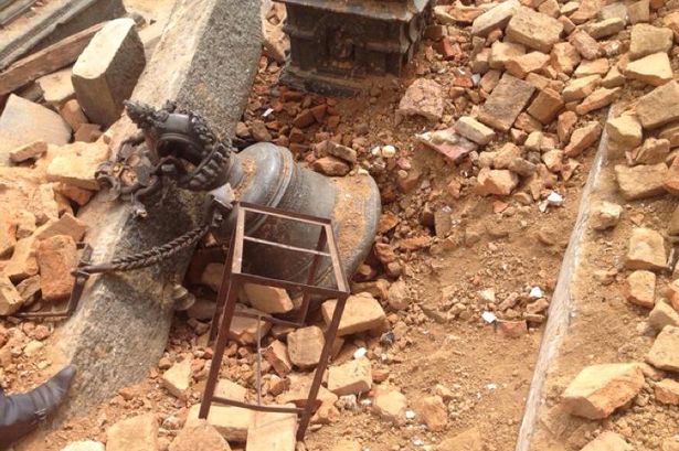 Chiếc chuông đã cứu sống em bé 6 tuổi trong cơn địa chấn kinh hoàng. (Ảnh: Mirror.co.uk)