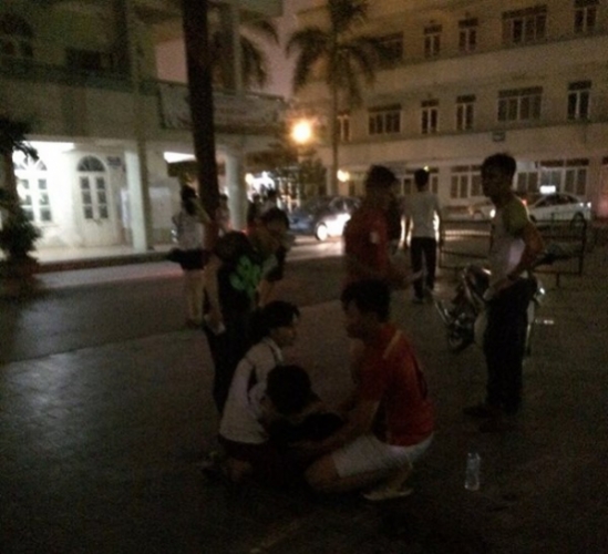 Tuy nhiên, sự việc chưa dừng lại ở đây. Một bảo vệ ký túc xá đã đi ra phàn nàn và to tiếng với hai sinh viên này. Dù thầy giáo đã đỡ lời, nhưng người này vẫn tỏ thái độ khó chịu. Đến khi nam sinh nọ nắm tay bạn gái chạy đi thì bất ngờ người bảo vệ quay sang đạp mạnh, khiến chàng trai ngã lăn ra sân và ngất xỉu.