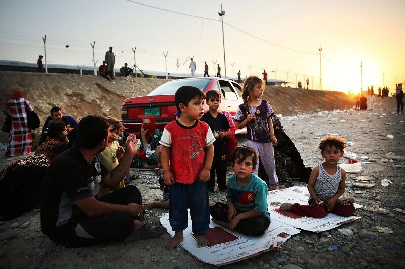 Trẻ em Iraq được sơ tán khỏi vùng chiến sự gần thành phố Mosul, Iraq.