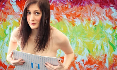 Marcey Hawk (California, Mỹ) rất tự hào về bộ ngực có kích cỡ khủng của mình. Không những vậy, đây còn là ’công cụ’ giúp cô sáng tạo nghệ thuật. Người phụ nữ này đã dùng ngực trần để vẽ nên những bức tranh vô cùng độc đáo và đầy tính nghệ thuật.