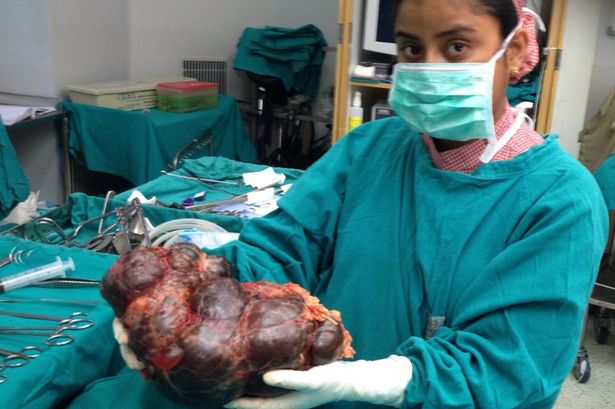 Ngay sau đó các bác sĩ đã tiến hành phẫu thuật và sốc nặng khi nhìn thấy quả thận to bằng một đứa trẻ sơ sinh đang nằm kẹt giữa ruột bệnh nhân.