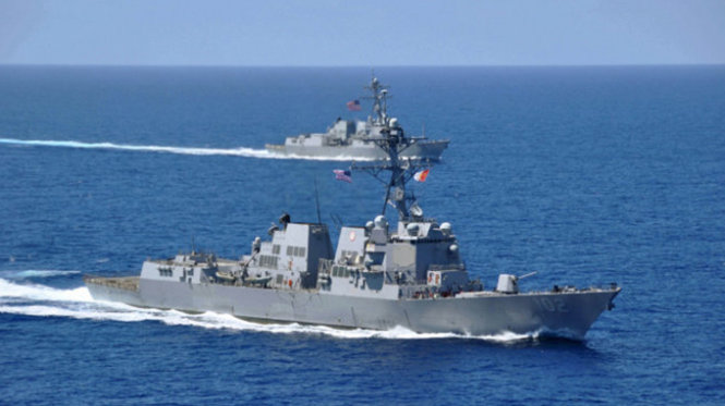 Tàu khu trục USS Sampson và USS Pinkney của hải quân Mỹ trên biển Đông - Ảnh: US Navy