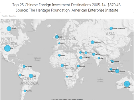 25 mục tiêu đầu tư ở nước ngoài lớn nhất của Trung Quốc từ năm 2005 đến 2014, trị giá 870,4 tỉ USD