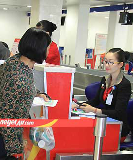 Sau khi xếp hàng đến lượt, anh Trung được nhân viên hướng dẫn sang các quầy từ 122 trở đi để làm thủ tục. Anh Trung thắc mắc và ra ngoài gặp nhân viên VietJet là chị Lê Thị Thái Hà yêu cầu giải thích.