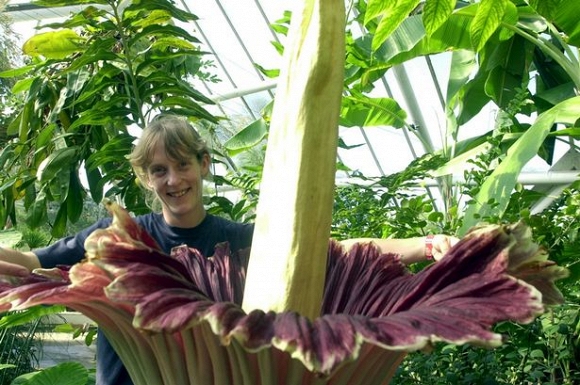 Hoa xác thối (Titan Arum)- loài hoa kỳ lạ nhất thế giới này chỉ nở một lần trong 10 năm và có mùi giống hệt mùi tử thi đang phân hủy. Nó được mệnh danh là bông hoa lớn nhất trên thế giới bởi đường kính có thể lên tới 2m. Mặc dù có mùi xác chết đang phân hủy nhưng loài hoa kỳ lạ nhất thế giới 10 năm chỉ nở 1 lần này lại thu hút hàng ngàn người hiếu kỳ chiêm ngưỡng.