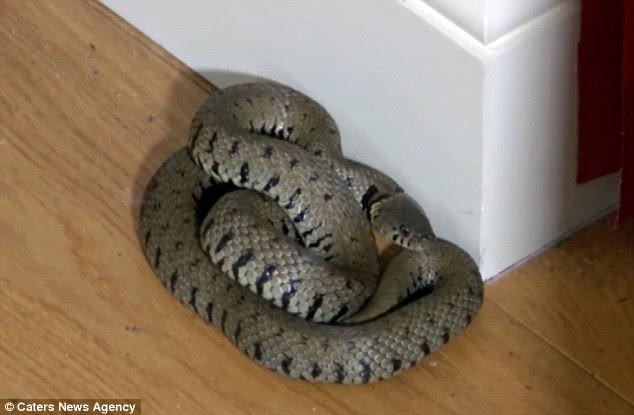 Con rắn vô tư cuộn mình ngủ ngay trong nhà.